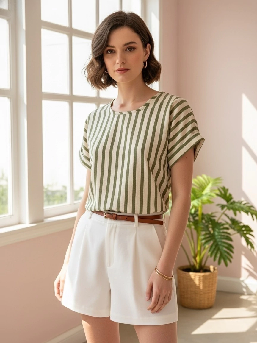 Blusa de manga Crepe - G (42) - LISTRADA VERDE
