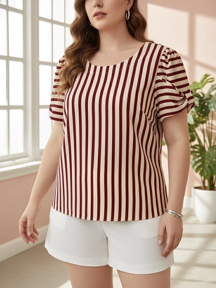 Blusa de manga Crepe - G (42) - LISTRADA VINHO