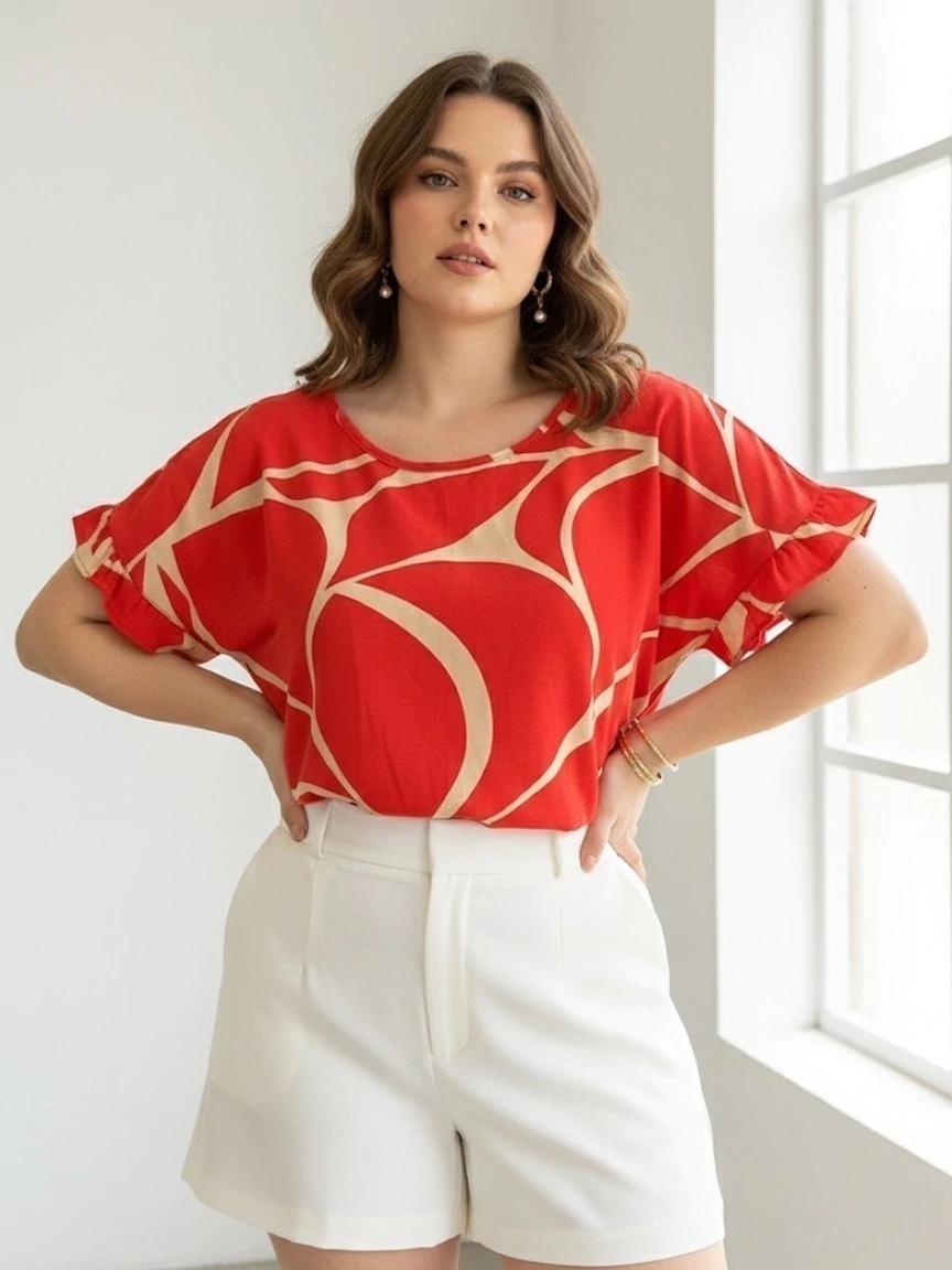 Essa blusa foi fabricada no tecido Crepe. O crepe é um tipo de tecido leve, conhecido por sua textura ondulada. Dispensando o uso de ferro de passar e tornando o seu uso muito mais prático. Além de ser um tecido respirável, ideal para os dias mais quentes, pois sua textura traz conforto e levesa.