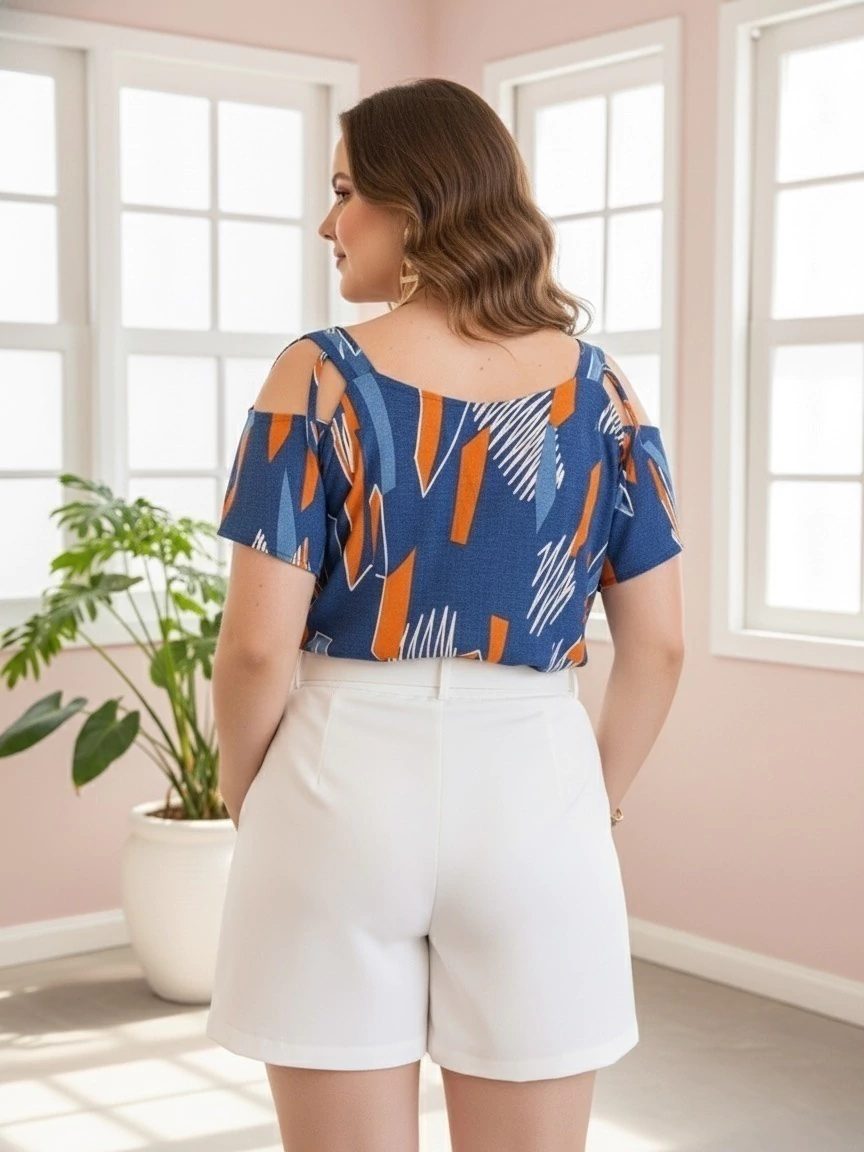 Essa blusa foi fabricada no tecido Crepe. O crepe é um tipo de tecido leve, conhecido por sua textura ondulada. Dispensando o uso de ferro de passar e tornando o seu uso muito mais prático. Além de ser um tecido respirável, ideal para os dias mais quentes, pois sua textura traz conforto e levesa.