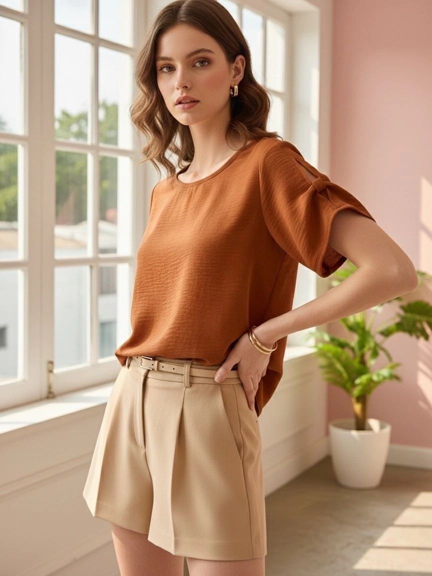 • O tecido duna é conhecido por sua leveza e caimento fluido, o que o torna ideal para peças que precisam ser confortáveis e que se movem bem.
