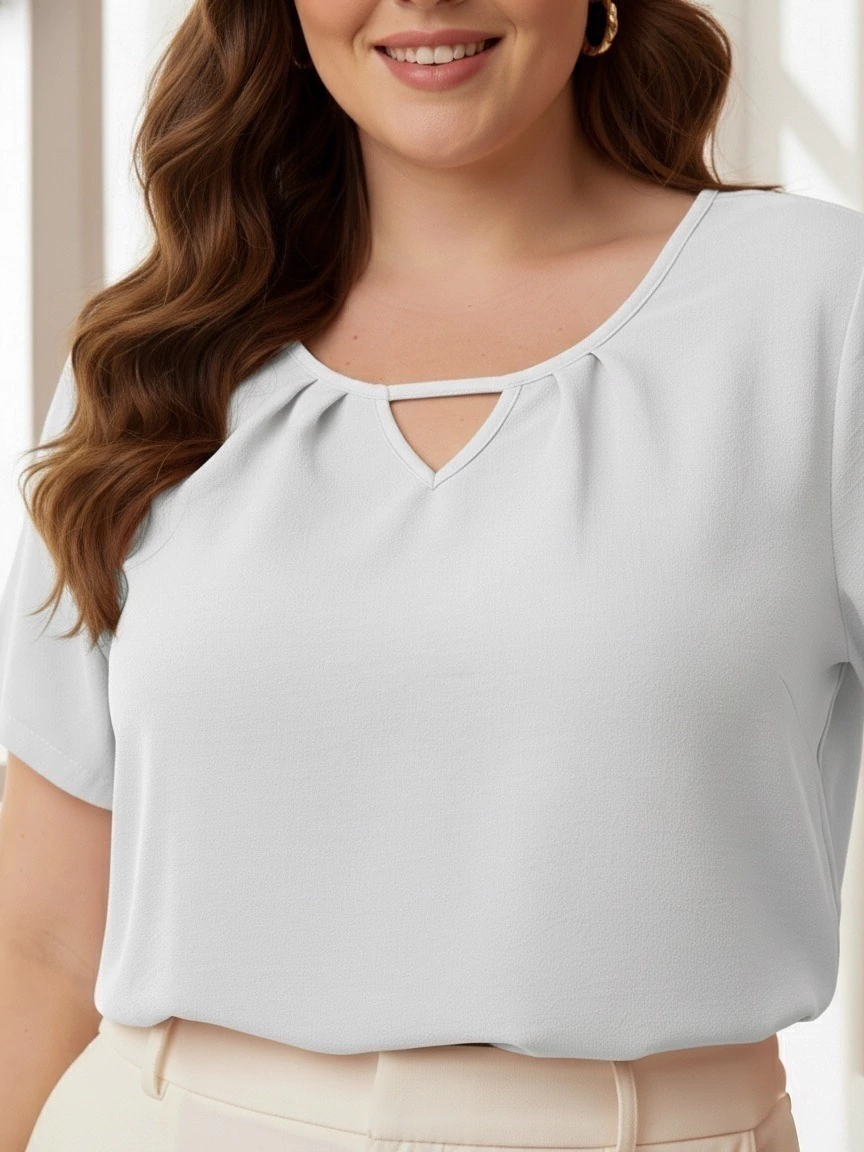 Essa blusa foi fabricada no tecido Duna que é leve, fluido e com uma textura suave. Por ter em sua composição poliester e elastano, traz muito conforto no seu uso.