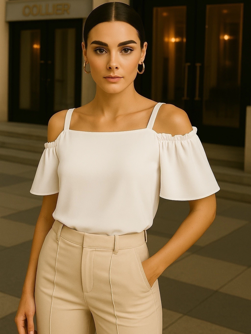 • O tecido duna é conhecido por sua leveza e caimento fluido, o que o torna ideal para peças que precisam ser confortáveis e que se movem bem.