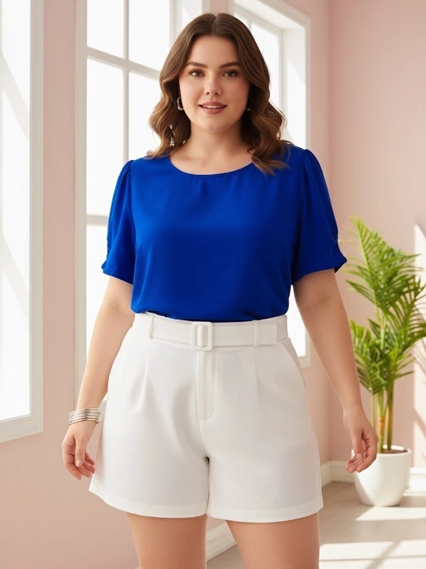 Essa blusa foi fabricada no tecido Duna que é leve, fluido e com uma textura suave. Por ter em sua composição poliester e elastano, traz muito conforto no seu uso.