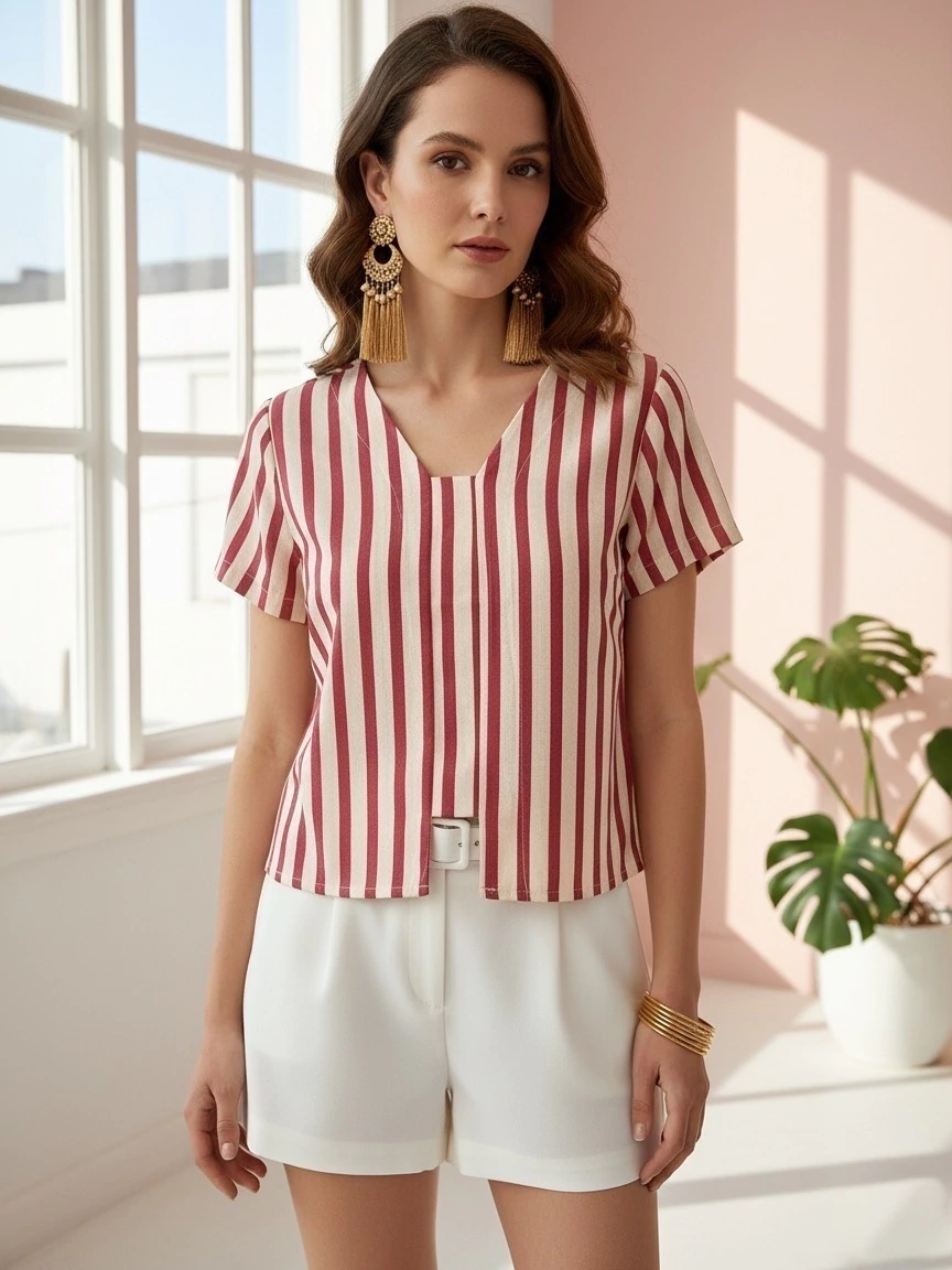 Blusa de manga Viscolinho - G3 (50) - LISTRADA ROSÊ