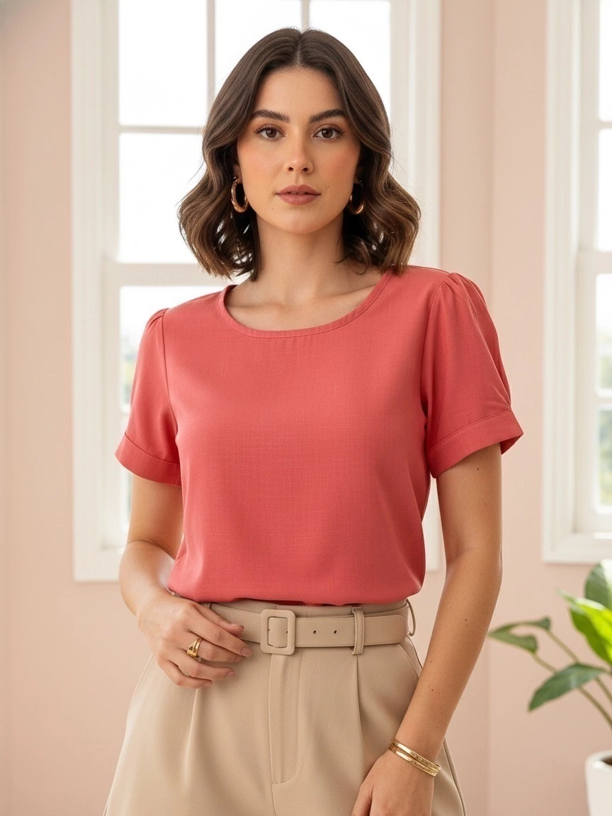 Esta blusa é confeccionada no tecido viscolinho, que oferece um visual sofisticado e descontraído ao mesmo tempo. O viscolinho combina as melhores características do linho e da viscose, proporcionando não apenas um caimento perfeito, mas também um conforto que você merece.