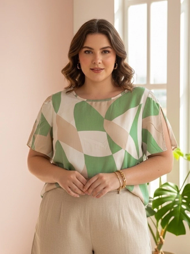 Esta blusa é confeccionada no tecido viscolinho, que oferece um visual sofisticado e descontraído ao mesmo tempo. O viscolinho combina as melhores características do linho e da viscose, proporcionando não apenas um caimento perfeito, mas também um conforto que você merece.