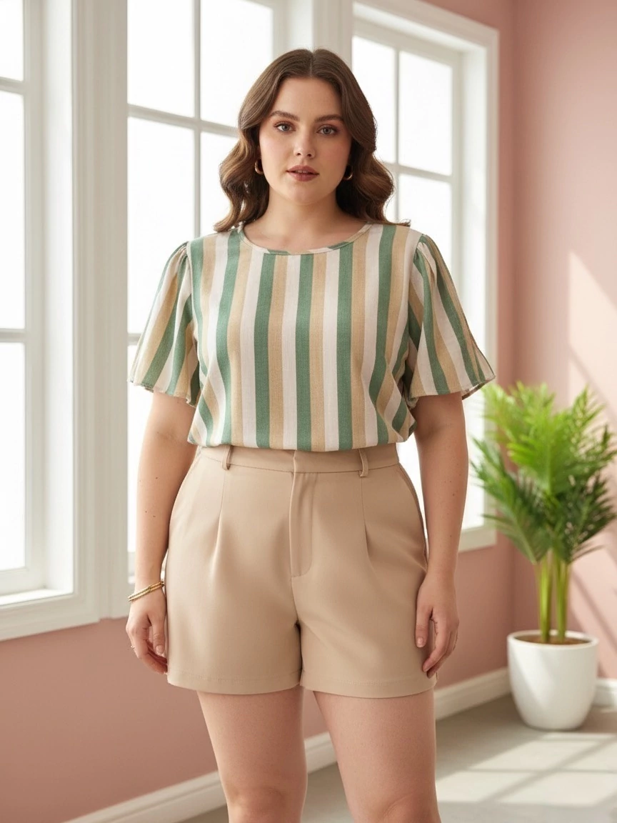 Blusa de manga Viscolinho - G4 (52) - LISTRADA VERDE