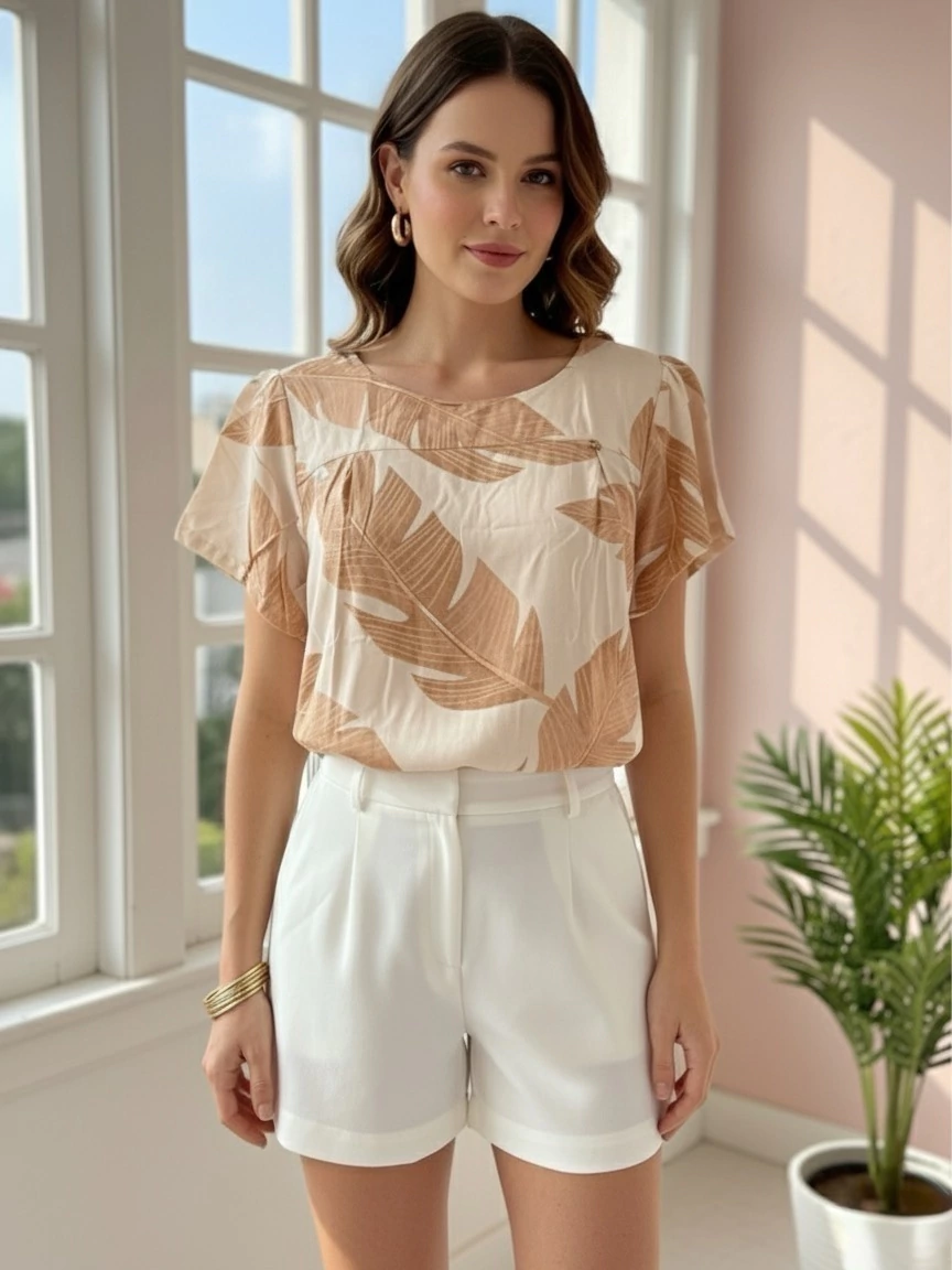 Esta blusa é confeccionada no tecido viscolinho, que oferece um visual sofisticado e descontraído ao mesmo tempo. O viscolinho combina as melhores características do linho e da viscose, proporcionando não apenas um caimento perfeito, mas também um conforto que você merece.