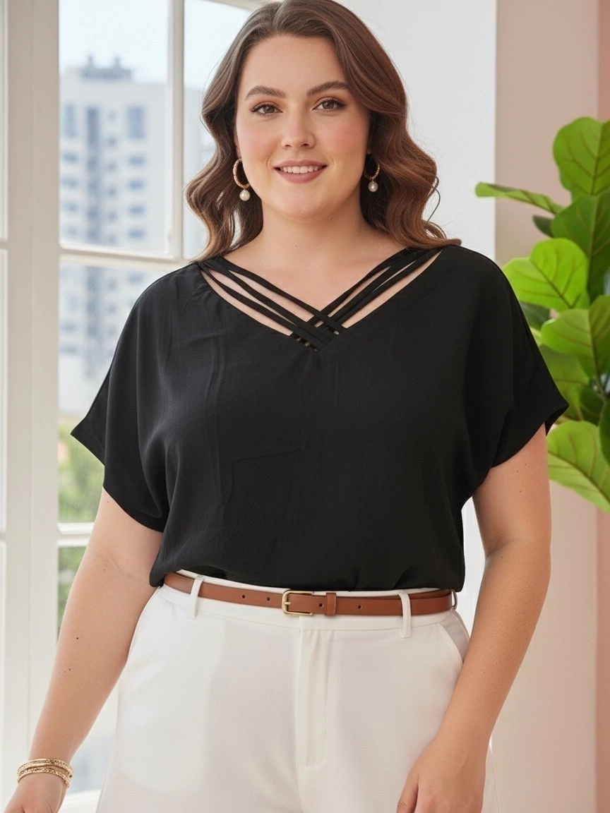 Esta blusa é confeccionada no tecido viscolinho, que oferece um visual sofisticado e descontraído ao mesmo tempo. O viscolinho combina as melhores características do linho e da viscose, proporcionando não apenas um caimento perfeito, mas também um conforto que você merece.