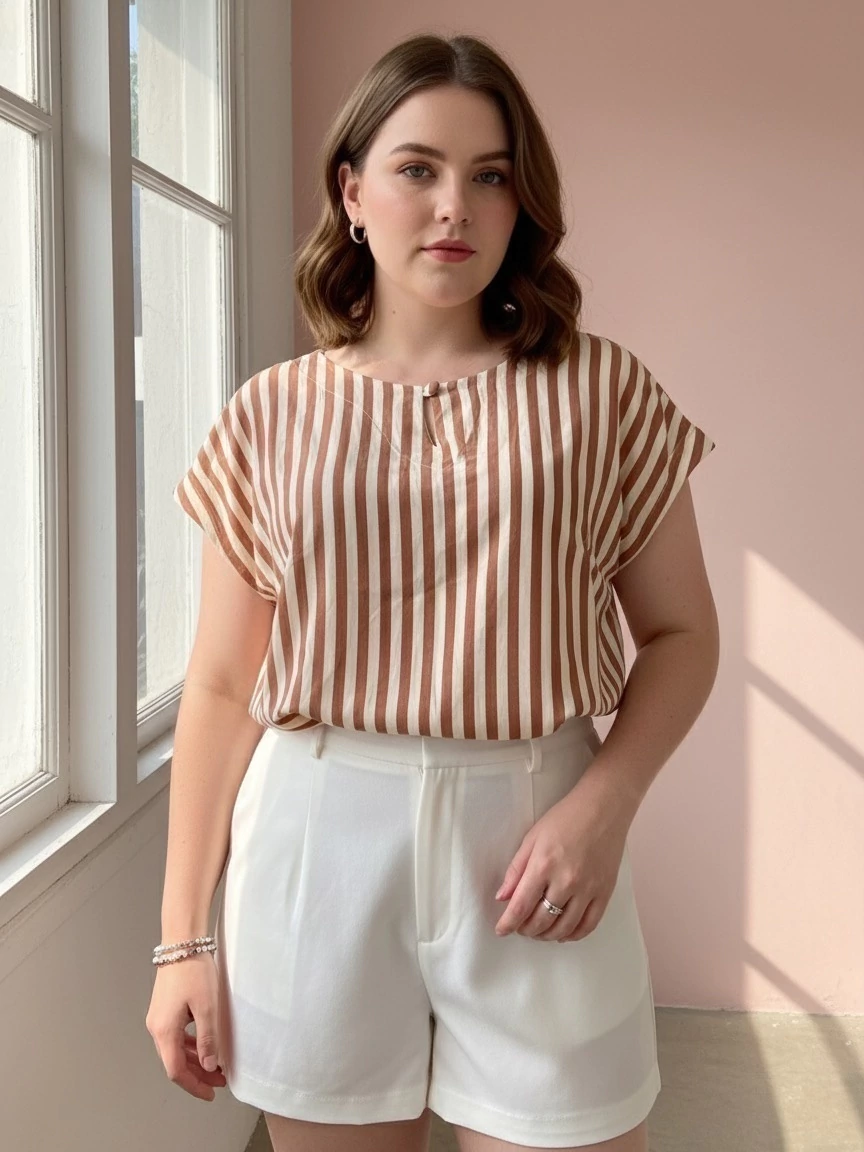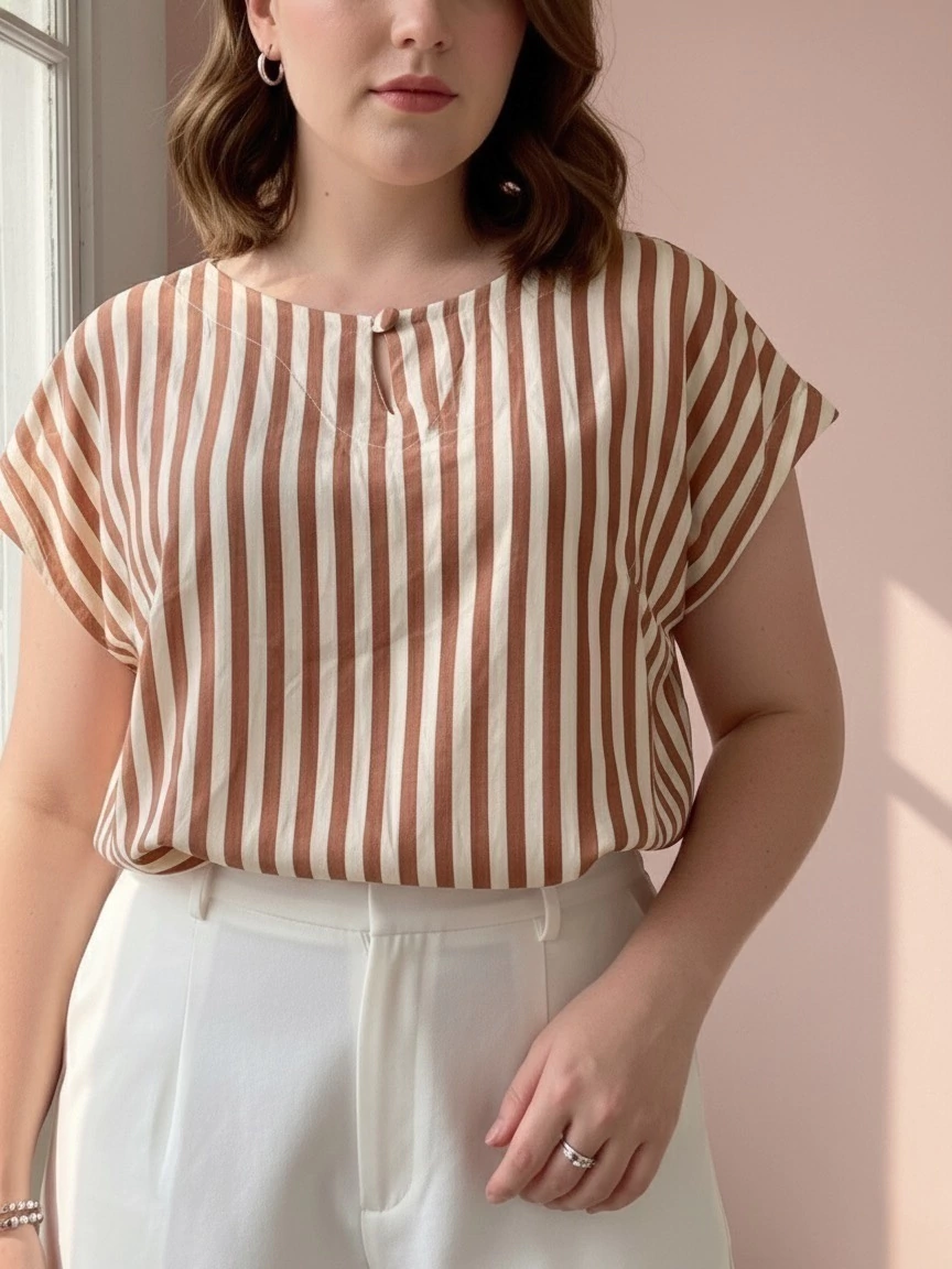 Blusa de manga Viscolinho - GG (44) - LISTRADA TELHA