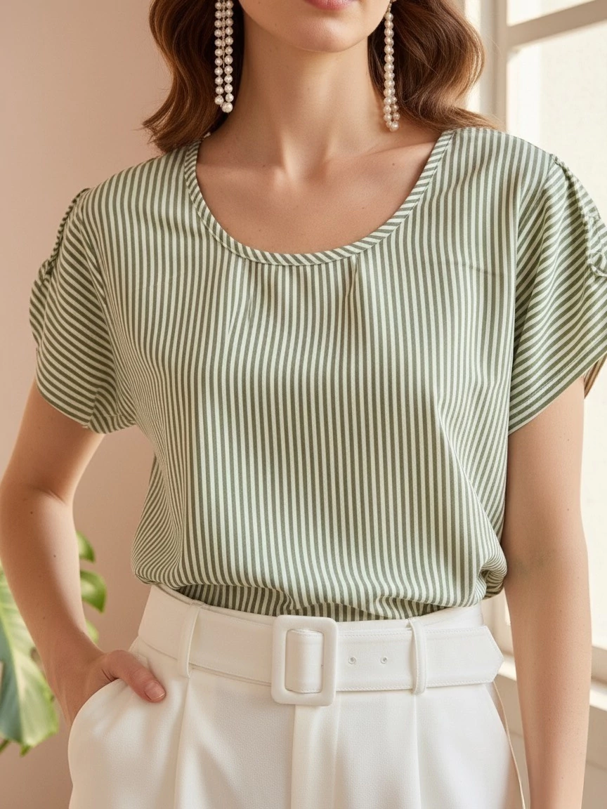 Blusa de manga Viscolinho - GG (44) - LISTRADA VERDE