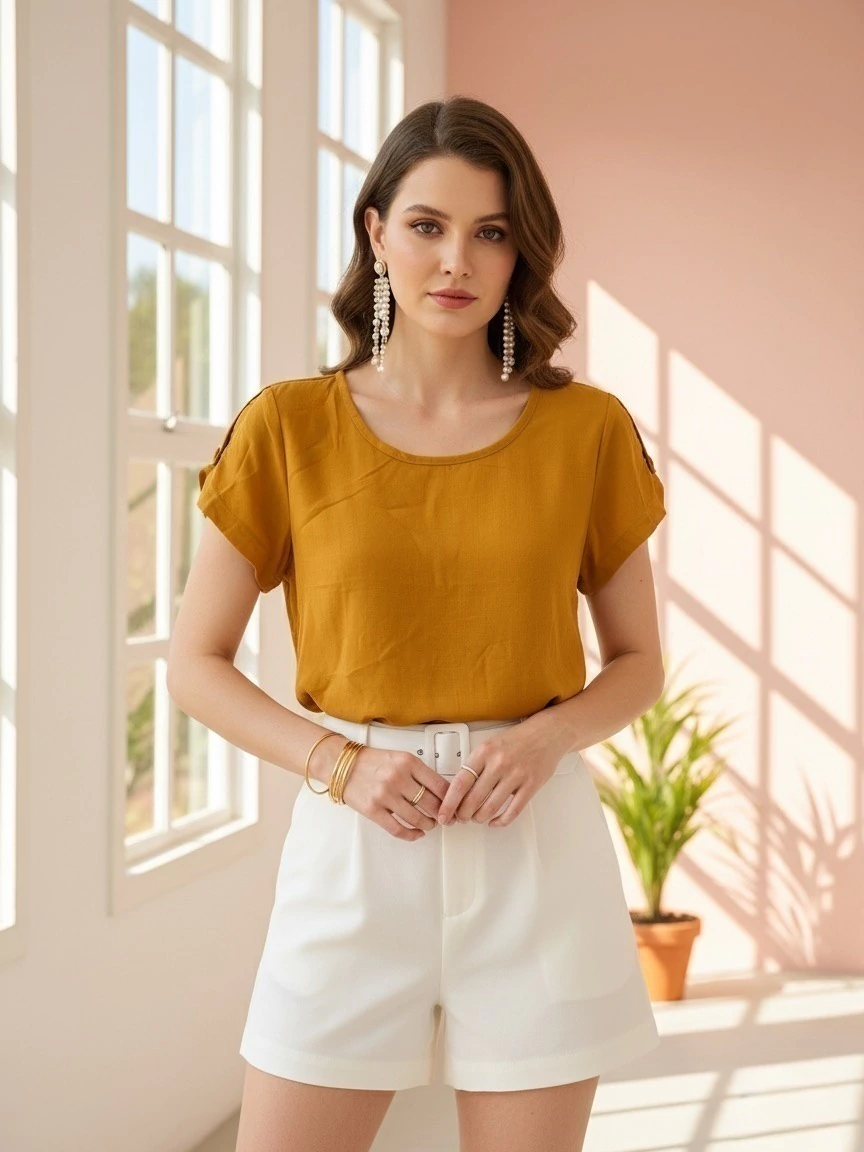 Esta blusa é confeccionada no tecido viscolinho, que oferece um visual sofisticado e descontraído ao mesmo tempo. O viscolinho combina as melhores características do linho e da viscose, proporcionando não apenas um caimento perfeito, mas também um conforto que você merece.