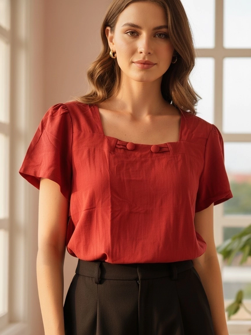 Esta blusa é confeccionada no tecido viscolinho, que oferece um visual sofisticado e descontraído ao mesmo tempo. O viscolinho combina as melhores características do linho e da viscose, proporcionando não apenas um caimento perfeito, mas também um conforto que você merece.