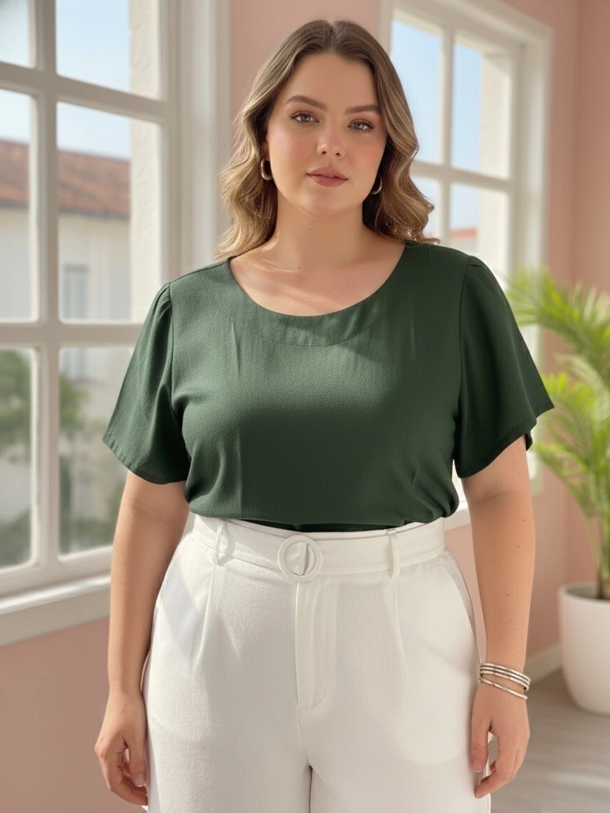 Esta blusa é confeccionada no tecido viscolinho, que oferece um visual sofisticado e descontraído ao mesmo tempo. O viscolinho combina as melhores características do linho e da viscose, proporcionando não apenas um caimento perfeito, mas também um conforto que você merece.