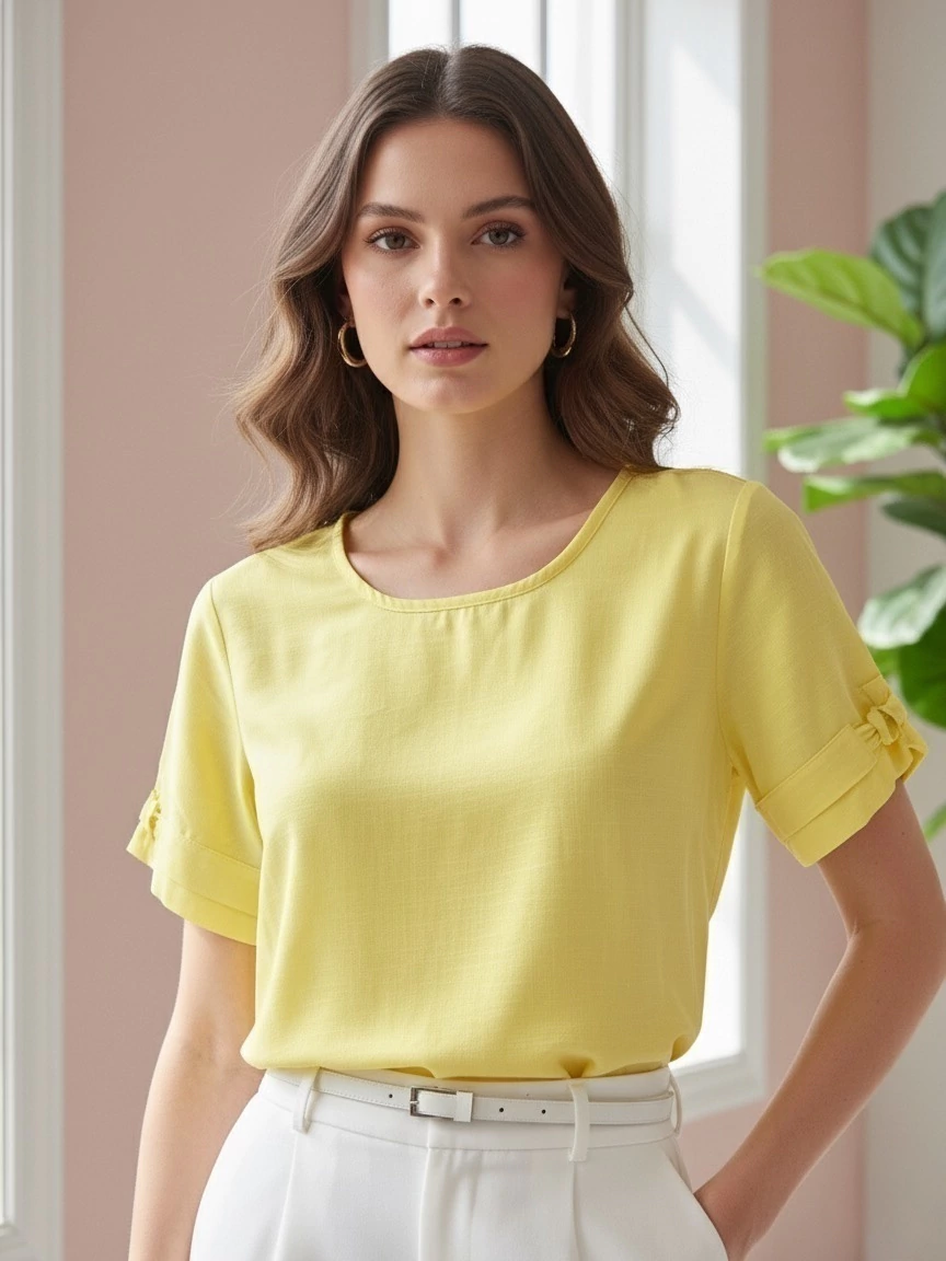 Esta blusa é confeccionada no tecido viscolinho, que oferece um visual sofisticado e descontraído ao mesmo tempo. O viscolinho combina as melhores características do linho e da viscose, proporcionando não apenas um caimento perfeito, mas também um conforto que você merece.
