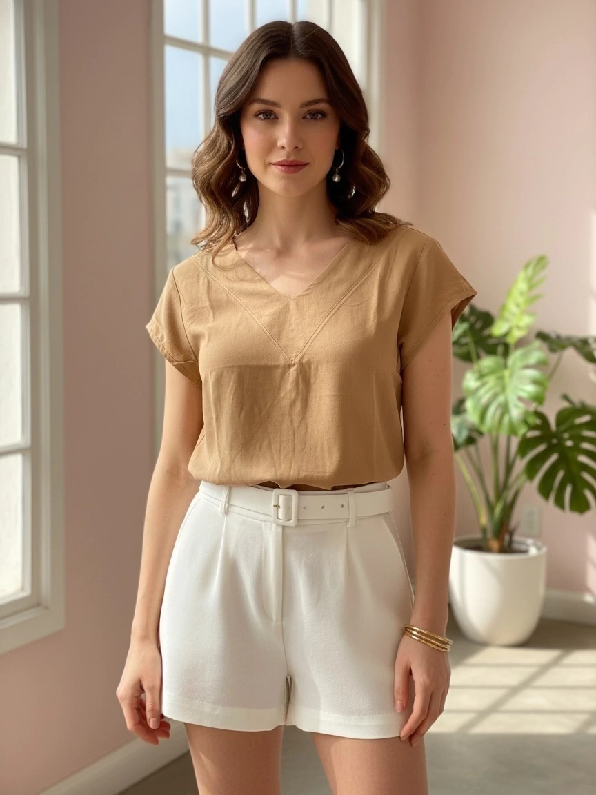 Esta blusa é confeccionada no tecido viscolinho, que oferece um visual sofisticado e descontraído ao mesmo tempo. O viscolinho combina as melhores características do linho e da viscose, proporcionando não apenas um caimento perfeito, mas também um conforto que você merece.