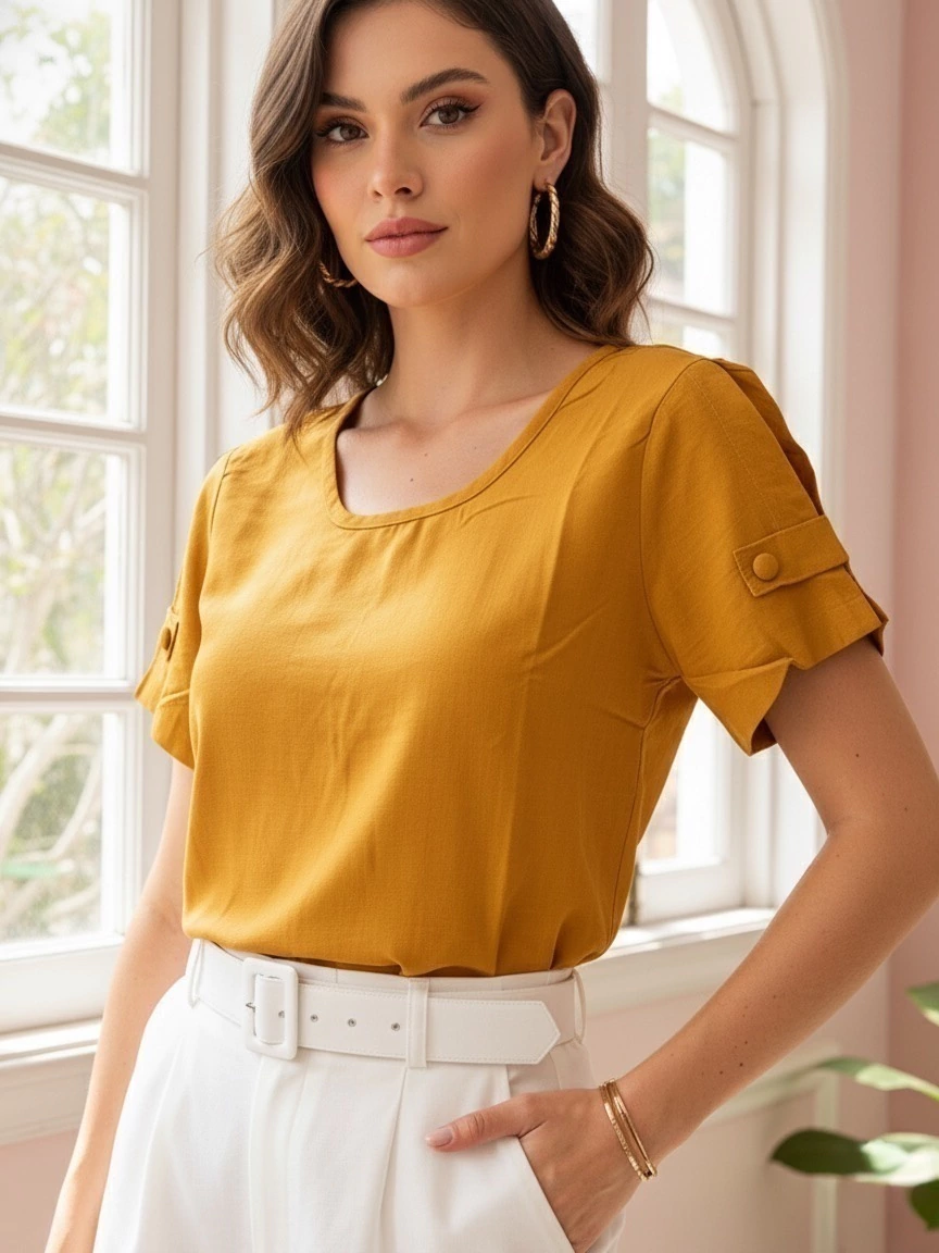 Esta blusa é confeccionada no tecido viscolinho, que oferece um visual sofisticado e descontraído ao mesmo tempo. O viscolinho combina as melhores características do linho e da viscose, proporcionando não apenas um caimento perfeito, mas também um conforto que você merece.