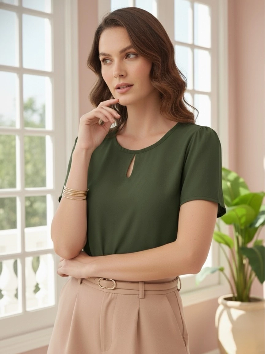 Esta blusa é confeccionada no tecido viscolinho, que oferece um visual sofisticado e descontraído ao mesmo tempo. O viscolinho combina as melhores características do linho e da viscose, proporcionando não apenas um caimento perfeito, mas também um conforto que você merece.