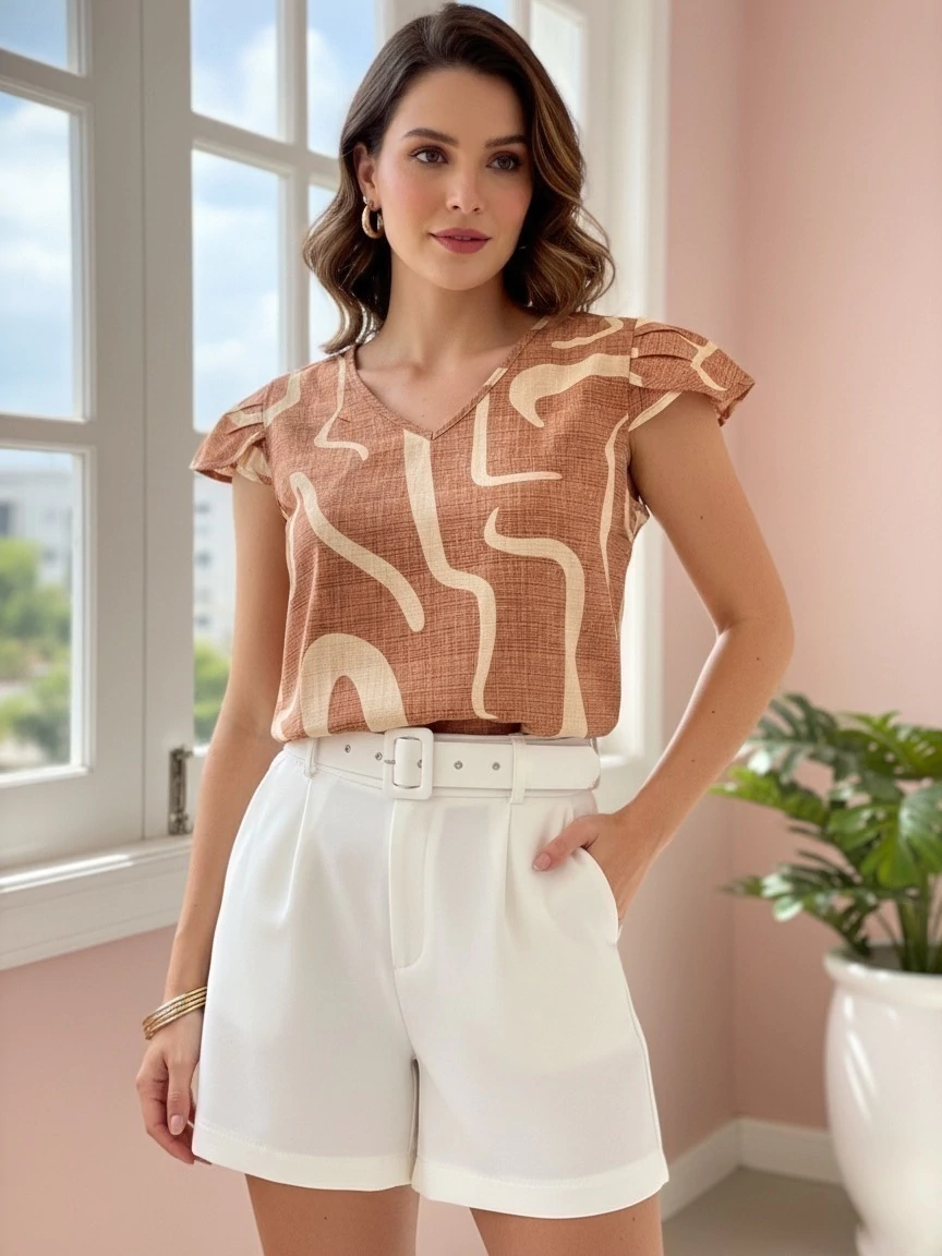 Esta blusa é confeccionada no tecido viscolinho, que oferece um visual sofisticado e descontraído ao mesmo tempo. O viscolinho combina as melhores características do linho e da viscose, proporcionando não apenas um caimento perfeito, mas também um conforto que você merece.