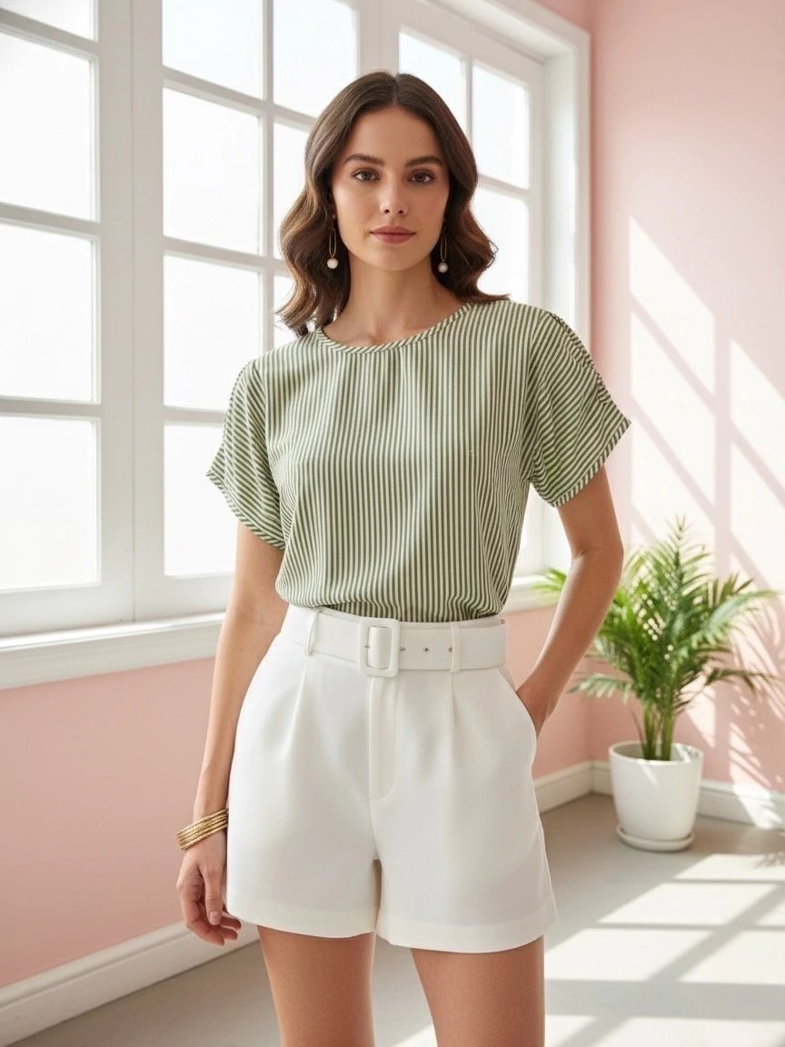 Blusa de manga Viscolinho - P (38) - LISTRADA VERDE