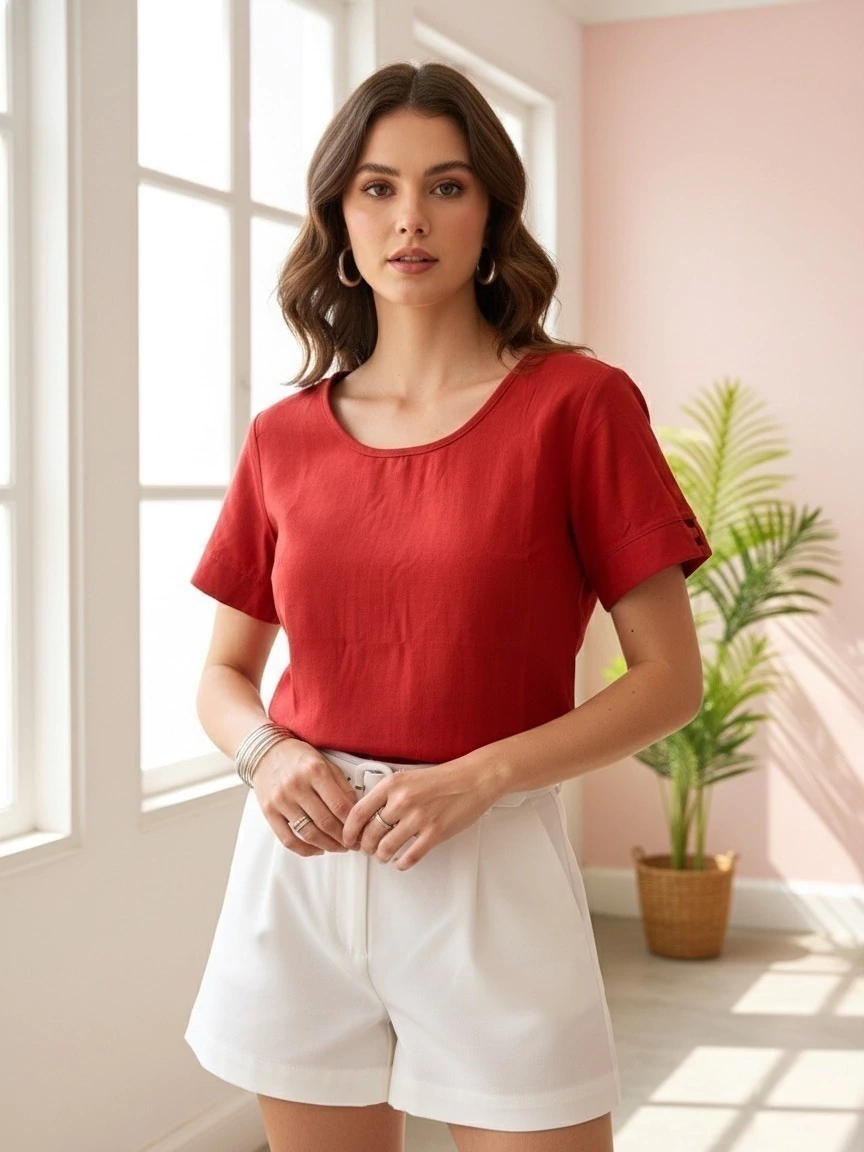 Esta blusa é confeccionada no tecido viscolinho, que oferece um visual sofisticado e descontraído ao mesmo tempo. O viscolinho combina as melhores características do linho e da viscose, proporcionando não apenas um caimento perfeito, mas também um conforto que você merece.
