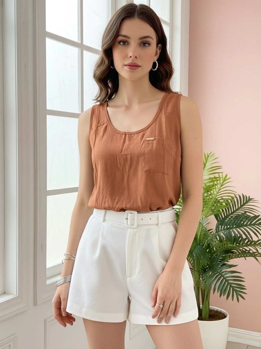 Blusa Regata Viscolinho - P (38) - CARAMELO
