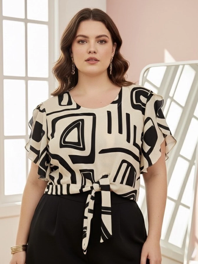 Essa blusa foi fabricada no tecido Crepe. O crepe é um tipo de tecido leve, conhecido por sua textura ondulada. Dispensando o uso de ferro de passar e tornando o seu uso muito mais prático. Além de ser um tecido respirável, ideal para os dias mais quentes, pois sua textura traz conforto e levesa.