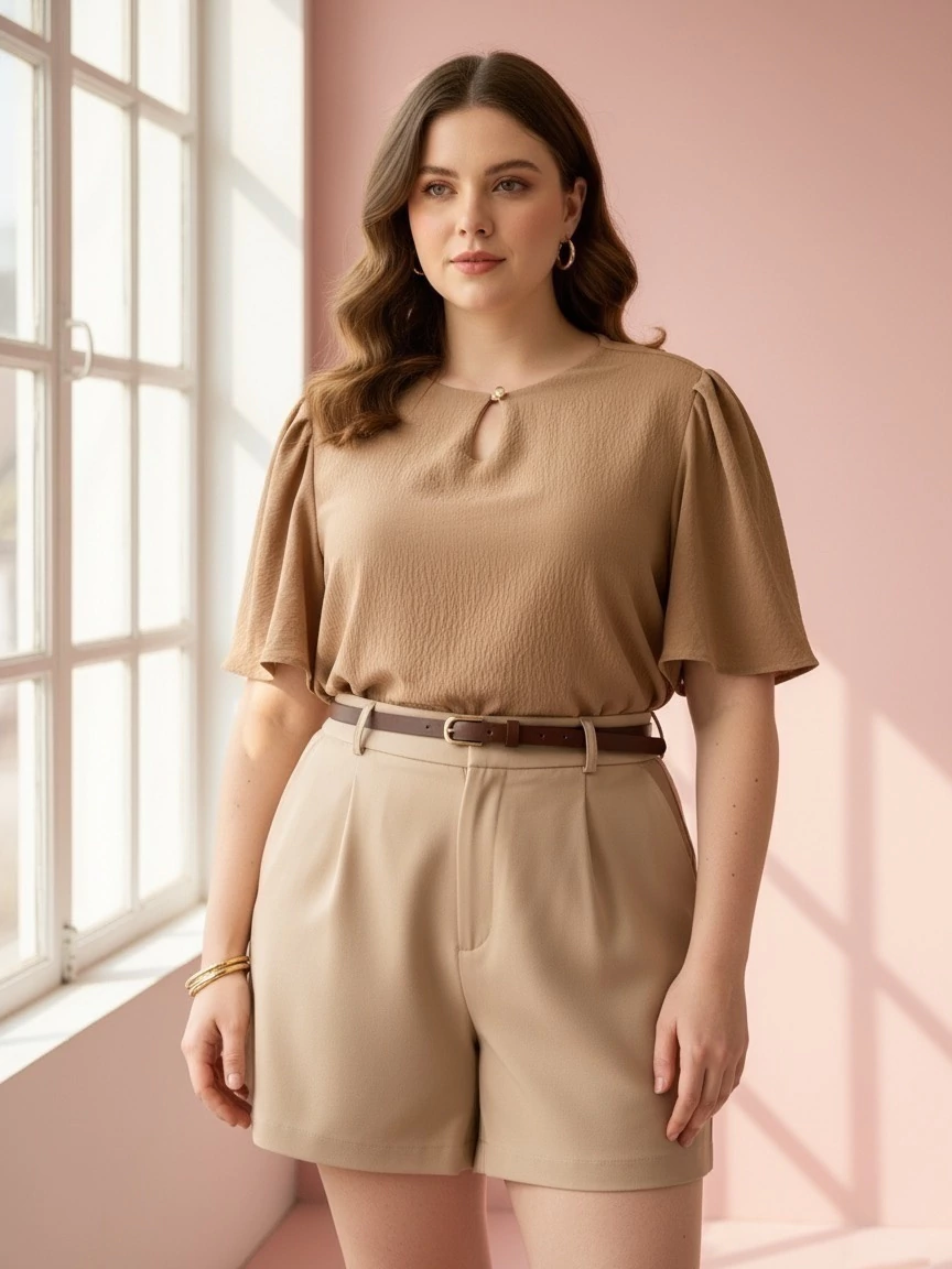 • O tecido duna é conhecido por sua leveza e caimento fluido, o que o torna ideal para peças que precisam ser confortáveis e que se movem bem.